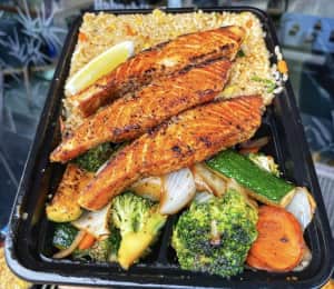 Example of New York Bowl Spicy Shrimp Bowl. Pizza Trio - 1473 S Main St. Habachihana Grill Food Truck - Santa Ana Back To Santa Ana CA.